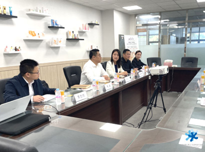 本次招商交流活動的首站是位于韓國首爾的ES COSMETIC化妝品公司,代表團在公司石會長的陪同下參觀交流。ES COSMETIC是韓國領先的化妝品制造商,成立于2015年,擁有頂尖的研究團隊、尖端的實驗裝備、現代化的生產和分析檢測設施,憑借經驗豐富的專業(yè)團隊為客戶提供研究、開發(fā)、生產、報批、營銷等一站式服務,產品涵蓋護膚品、彩妝和個人護理用品等多個領域。石會長與代表團就公司經營業(yè)務和近幾年的發(fā)展情況進行了交流,表示非??春梦磥碇袊袌龅臉I(yè)務發(fā)展。